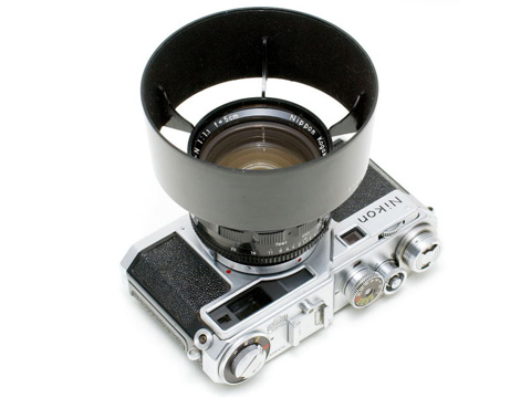 そのニコンSシリーズ用には、21mmから1000mmまでの大陣容の高性能な ニッコールレンズ群が用意されていました。今回は一眼レフ用も含め現在までニッコールレンズ中最高の明るさを誇る、ニッコールN50mmF1.1レンズで す。このレンズはマウントの形状により内爪と外爪と呼ばれる2種類が存在しますが、両者をあわせても約2000本しか生産されなかったそうで、現在では 50万円以上 もする非常に高価でかつ珍しいレンズとなっています。またこのレンズ専用のたぶん50mmレンズ用として世界最大サイズのフードには、30万円以上の値札 がつくようです。