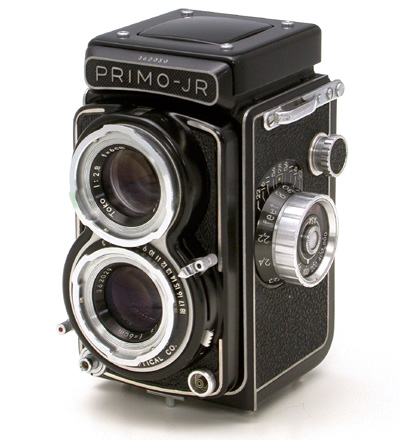 プリモJRは、東京光学が1958年に発売したベスト判(127判)フィルムを使用するコンパクトな二眼レフです。東京光学は1950年にプリモ フレックス(1型)を発売し、6x6判二眼レフカメラに参入しました。折からの二眼レフブームに乗り、プリモフレックスは徐々に進化しながら、1957年 のオートマットL型が最後となります。このプリモフレックスについては、写真工業2006年2月号に記事を書きましたので、来年1月20日発売をお楽しみ にお待ちください。