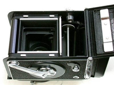 さてプリモJRは、120判フィルムを使用するプリモフレックスが終了した後に登場しているわけで、機能的にはオートマットLをそのまま小型化 したと言ってよいものです。かわいらしいボディに意外と高級感あふれるデザインが良くマッチし、性能も東京光学が誇る3群4枚テッサータイプのトプコール 60mmF2.8を搭載、撮影できる画質は非常に素晴らしいものです。4x4cmフォーマットの元祖はベビーローライフレックス(1931年)ですが、こ のシリーズが最後までノブ巻き上げだったのに、プリモJRはクランク巻き上げになっているなど、性能的には本家を凌駕する部分もあります。