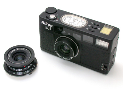 今回ご紹介するのは、宮崎R&DでライカMマウントに改造されたニッコール28mmF2.8レンズです。このレンズは1994年9月に登 場したニコンの高級コンパクトカメラ、ニコン28Tiに装着されているレンズそのものです。