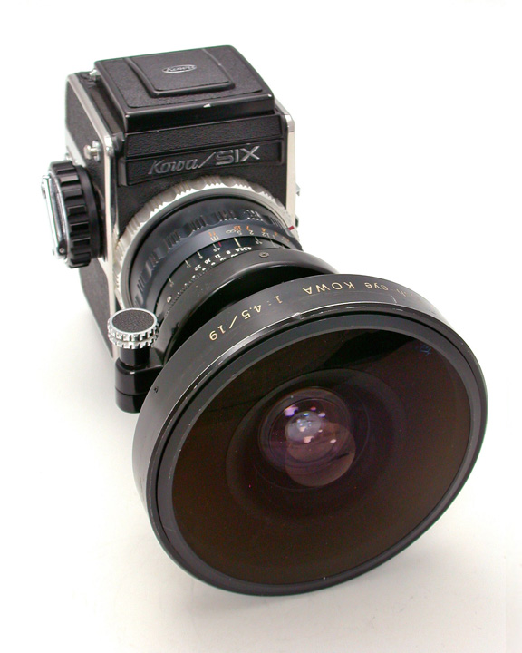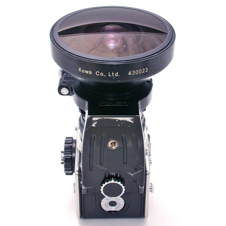 さて今回はさらに珍らしいフィッシュアイ・コーワ19mmF4.5レンズをご紹介いたします。このレンズは著名な女性人物写真家の方から整備のご依頼があったもので、6x6cm判カメラ交換レンズとしては世界唯一の全周(円周)魚眼レンズです。私も長らく写真でしかその存在を見たことがなく、実物をぜひ手にしてみたいと思っていた夢のレンズです。作例写真をご覧いただければわかるように、約180度の画角から得られる写真は、普通の広角レンズとはまったく異なる迫力をもってせまってきます。魚眼レンズコレクターなら、同じく中判唯一の180度全周撮影専用カメラ、フィッシュアイ・ニッコール16.3mmF8付きのニコン全天カメラ(正式名称は魚眼ニッコール付きカメラ)ともども手元に欲しいレア・アイテムのひとつであることは間違いありません。