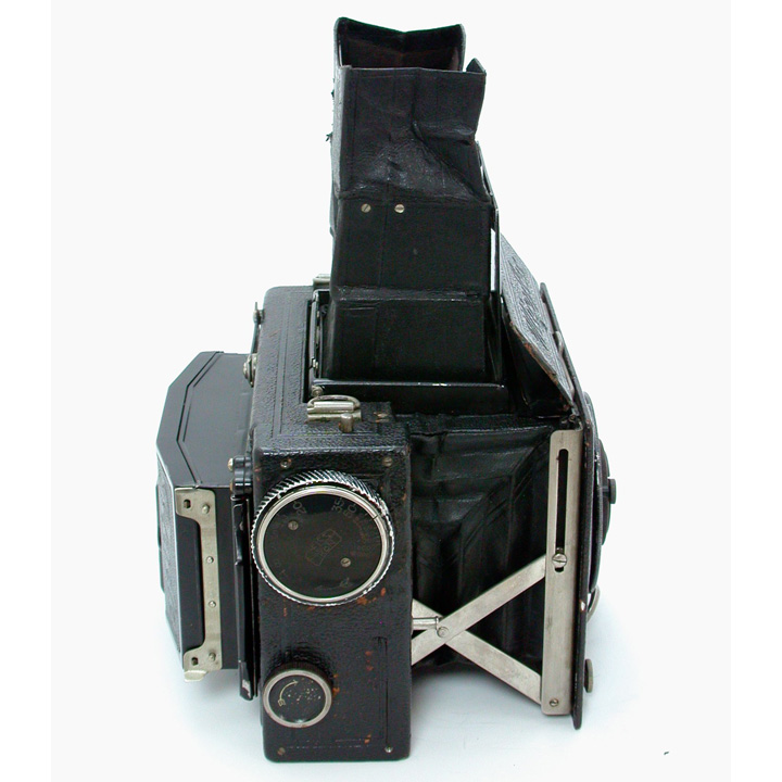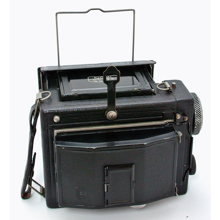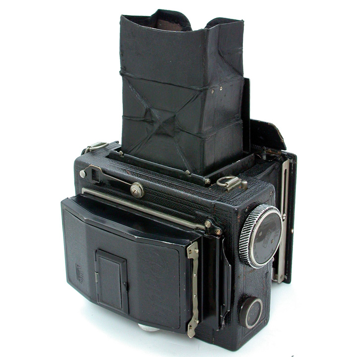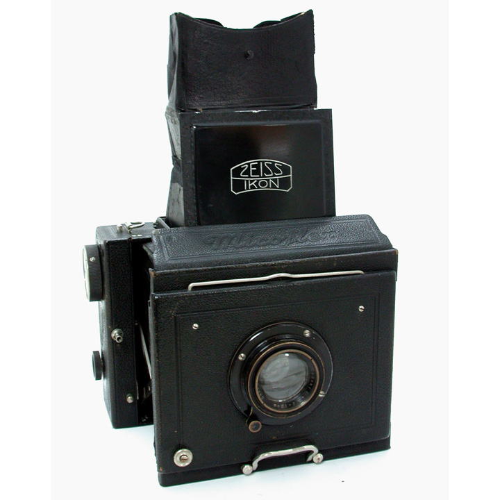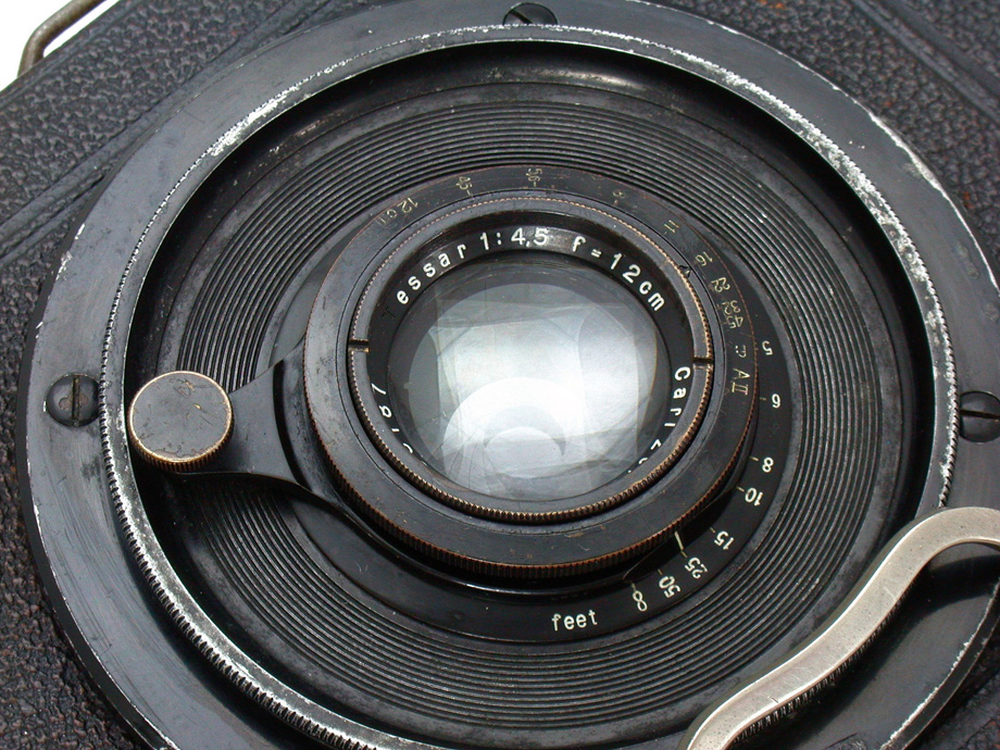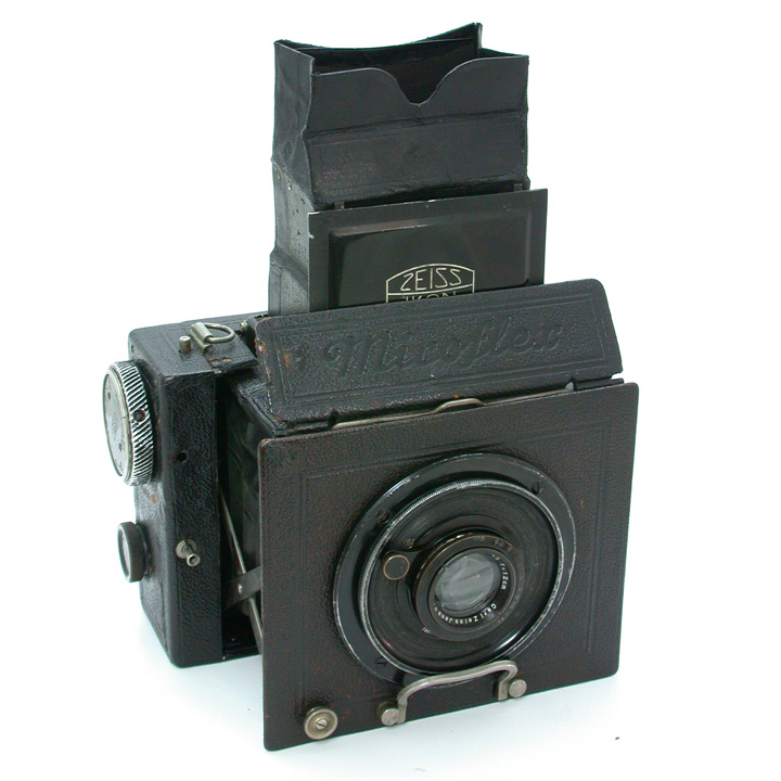 Aタイプに備わっているレンズはテッサー120mmF4.5が多いようですが、ほかにテッサー135mmF4.5や大口径のビオ・テッサー135mmF2.8、テッサー145mmF2.7も知られています。Bタイプはテッサー150mmF4.5が標準的ですが、ほかにテッサー150mmF3.5、150mmF2.7、ビオ・テッサー165mmF2.8があるそうです。このミロフレックスは当時は非常に高価な高級カメラであったそうです。