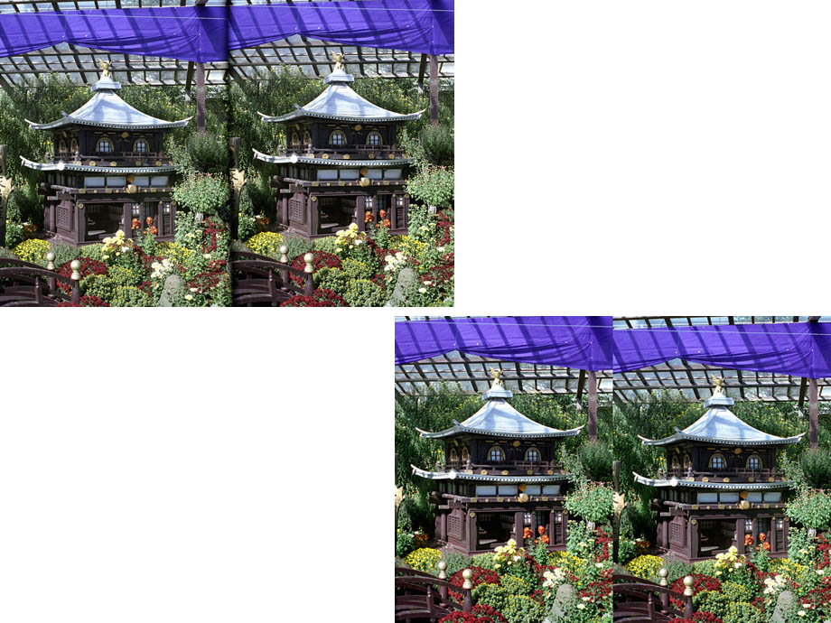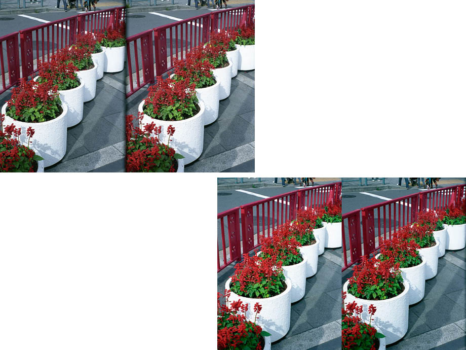 ステレオ写真の撮影ではできるだけ絞って被写界深度を深くし、ピントの合う範囲を広くすることと、カメラの水平をできるだけ正確にだすこと、手ぶれをしないように撮影することが、立体視したときにきれいなイメージを見るためのポイントです。