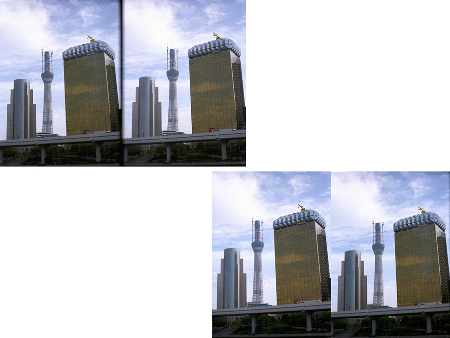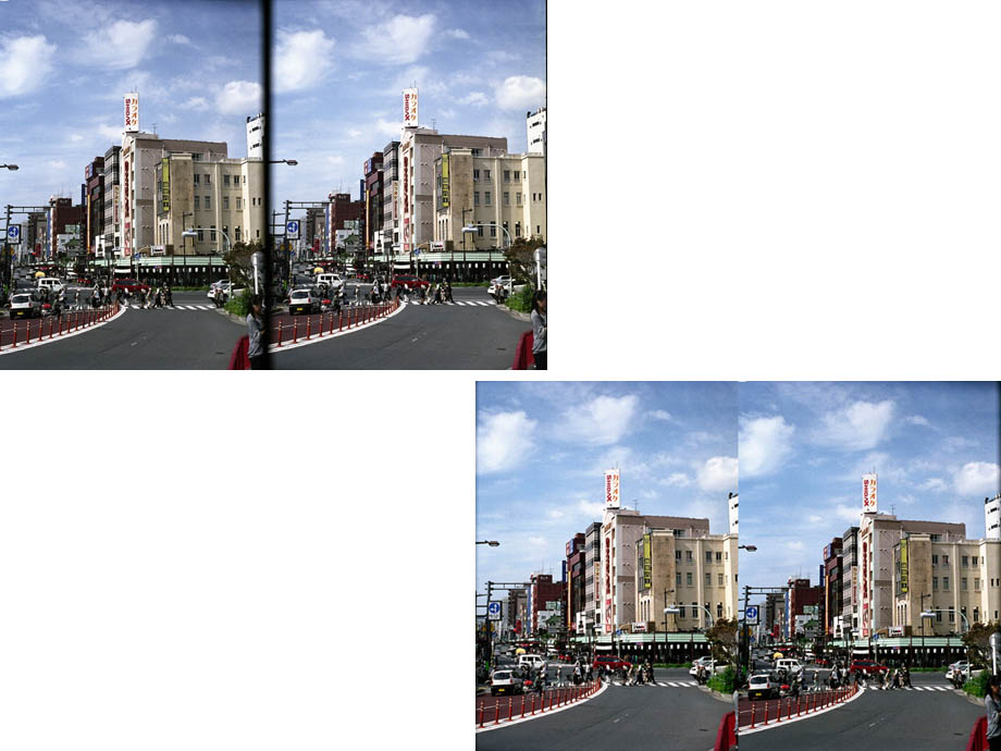 撮影された画像は、作例写真のようにライカ判(24x36mm)の中に左右のレンズでされた画像が2枚並びます。しかしこのままでは立体視できません。左右が逆に写っているからです。プリントアウトして立体視する場合には、左右を入れ替えてください。リバーサルフィルムを使用して撮影した場合には、スライドマウントに入れて専用ビューワーで観察すれば、ビューワーが左右の像を入れ替えてくれるのでそのまま観察できます。