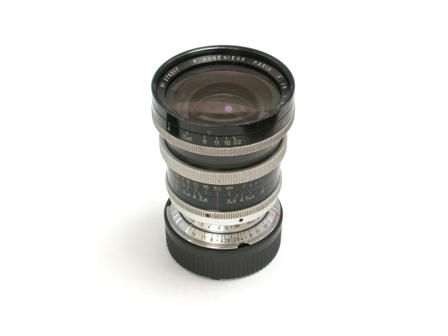 フランスのアンジェニュー社製レンズは、マニアには高い人気があります。生産本数が少ないこともあって、ライカマウント用のアンジェニュー社製レンズはいずれも高価です。宮崎では比較的に入手しやすいエキザクタマウント用の28mmレンズのマウント部を宮崎MS-28ヘリコイドに接続し、距離計の連動カムを個々に調整し、ライカで使用できるように改造いたしております。改造費用は47,250円(消費税込み)です。改造後、宮崎が測定したデータ(実焦点距離、収差状況等)を添付いたします。なおアンジェニュー社製レンズの 28mmや35mm用のフードを宮崎が製造いたしております(10,290円、消費税込み)。 |