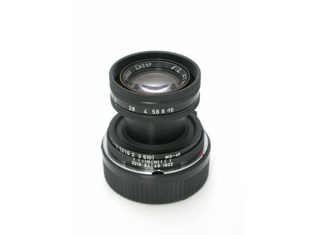 コダック・シグネット35のエクター44mmF3.5レンズは、すぐれた描写性能で知られたアメリカを代表する名レンズの一つです。ボディデザインも良い カメラですが、シャッターが故障して修理不能になった場合、レンズごとシャッターユニットを取り外してライカLマウントに改造することが可能です。絞りは オリジナルのものをそのまま使用いたします。改造費用は52,500円(消費税込み)です。改造後、宮崎が測定したデータ(実焦点距離、収差状況等)を添 付いたします。なお宮崎では金属製エクター44mm用フードもご用意いたしております(6,300円消費税込み)。 |