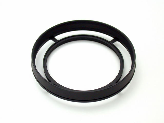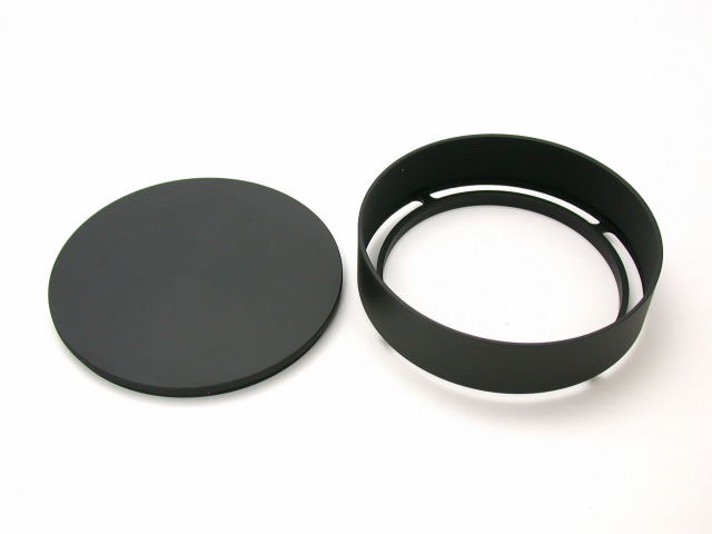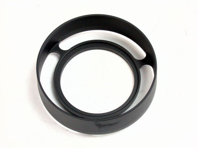 ライカE39対応金属製穴あきフード。39->40.5mmアダプター(1,050円)を併用すると、ツァイスやニコンなどの40.5mmフィルター枠レンズに使用可能。 |