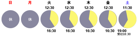 | 土曜日 | 11:30~19:00(店頭受付18:30まで) |