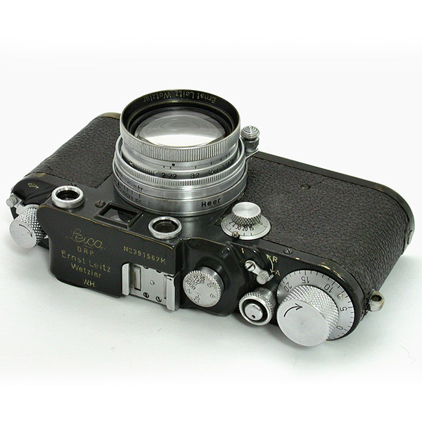 第二次世界大戦中の1941~43年に製造されたライカⅢcの一部(387000~392000)に、シャッター及び巻き上げ機構部にボールベアリングを実装し、作動の円滑化と低温耐性の向上を図ったモデルが少数存在します。軍用として供給されましたが、一部は市販もされたそうです。このモデルにはボールベアリング(Kugellager)が使われたことを示すKの文字が製造番号の最後に刻印されており、そのほかにも識別ポイントがあります。多くは灰色に塗装されているため、ライカⅢcグレー、あるいは単にグレーライカと呼ばれることもありますが、クローム仕上げの個体も少数ですが存在しています。