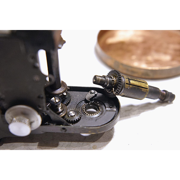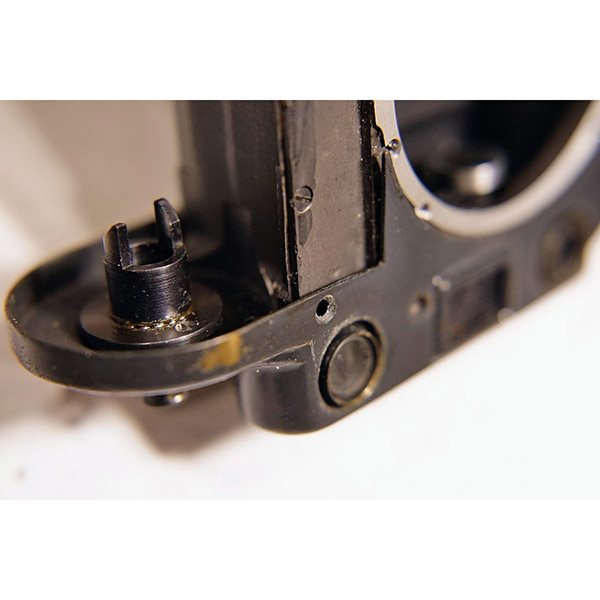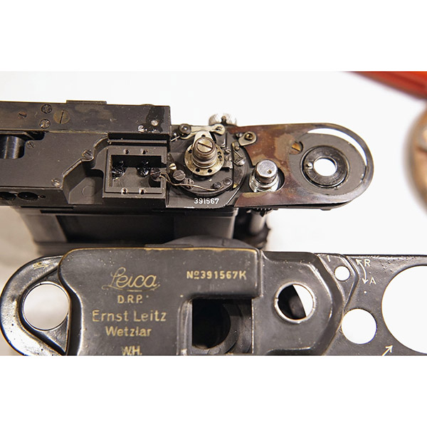 ライカⅢcKモデルは、その特殊性と希少性から昔から非常に高価に取り引きされています。そのため偽物がとても多いことでも有名です。弊社で過去に整備を依頼されたライカⅢcグレーの多くは、残念なことに偽物でした。ボディの刻印を打ち替えているので、内部の製造番号と一致せず、最も重要なベアリング部品が実装されていません。シャッター幕にKの文字が白ペイントされているものが多いですが、もちろん偽物です。塗装色も本物よりやや明るめのものが多いようです。いずれにしても本物なら現在も百万円を超える価格がつくでしょうが、偽物はまったく価値がありません。分解してみればすぐにわかることですが、入手に際しては十分な注意が必要です。