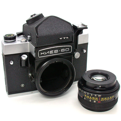 キエフ6C((キエフ60に先行したモデル、実際には6Sと表記されているがキリル文字でSはCである)は、ソビエト連邦で1960年代の末期~70年代初期にデザインされて、現在のウクライナの首都であるキエフのArsenal Zavodによって製造された。1971年~1980年に販売された6Cは、シャッターリリースが左手側にあり、機械的に信頼できず、不人気であった。キエフ60は1984年に出現し、特にシャッターボタンが右手用に再配置され、信頼性問題のほとんどが完全に解決されたわけではないにしても、修正されたという点など再設計されたカメラであった。